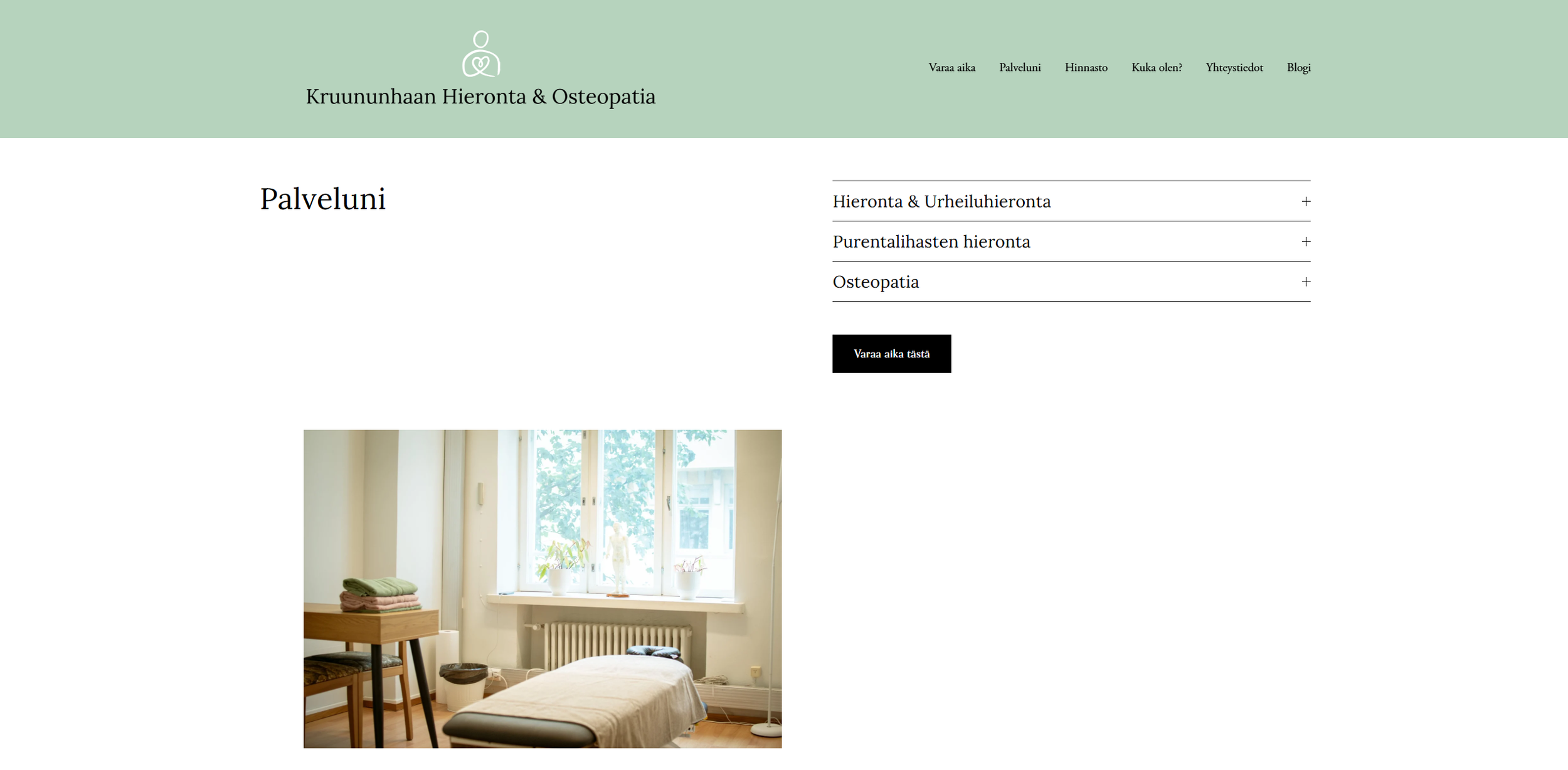 Asiakkaamme Kruununhaan Hieronta & Osteopatia tarvitsi nettisivut, jotka toimivat saumattomasti Timma -ajanvarauspalvelun kanssa.